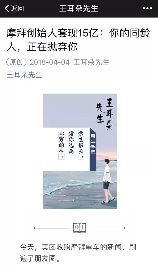 这几天,我的朋友圈被一篇鸡汤文霸屏了——《摩拜创始人套现15亿背后,你的同龄人,正在抛弃你》。