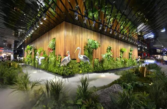 公共区域内遍布栩栩如生的小鹿、丹顶鹤、潺潺的流水、热带绿植,展现出神秘梦幻、充满灵性、葱郁清新的自然景象,令人得以放松。业态方面则配以皮雕、手打银、陶艺、插花等一系列手作工坊,以及轻食甜品等休闲内容,填补了传统商业街所缺失的商业体验。