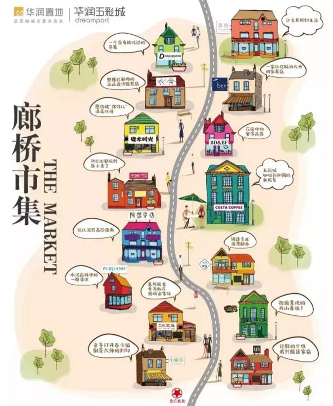 2017年元旦,北京华润五彩城在一期和二期项目的3楼连廊处打造了文创体验街区——廊桥市集,主打“探寻美好生活”的慢生活精致空间。