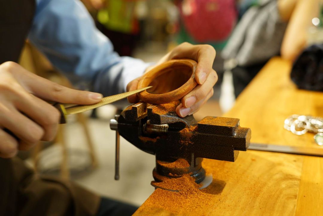 街区是以手作为主题的综合性街区,包含木艺·吾喜造木、金工·十八字金、皮艺·朴作革工坊、花艺·DDFLOWER、陶艺·Color Me Mine(彩乐美)、烘焙·zuo坊、绘画·美深绘观等7大手作业态、20余家个性店铺。