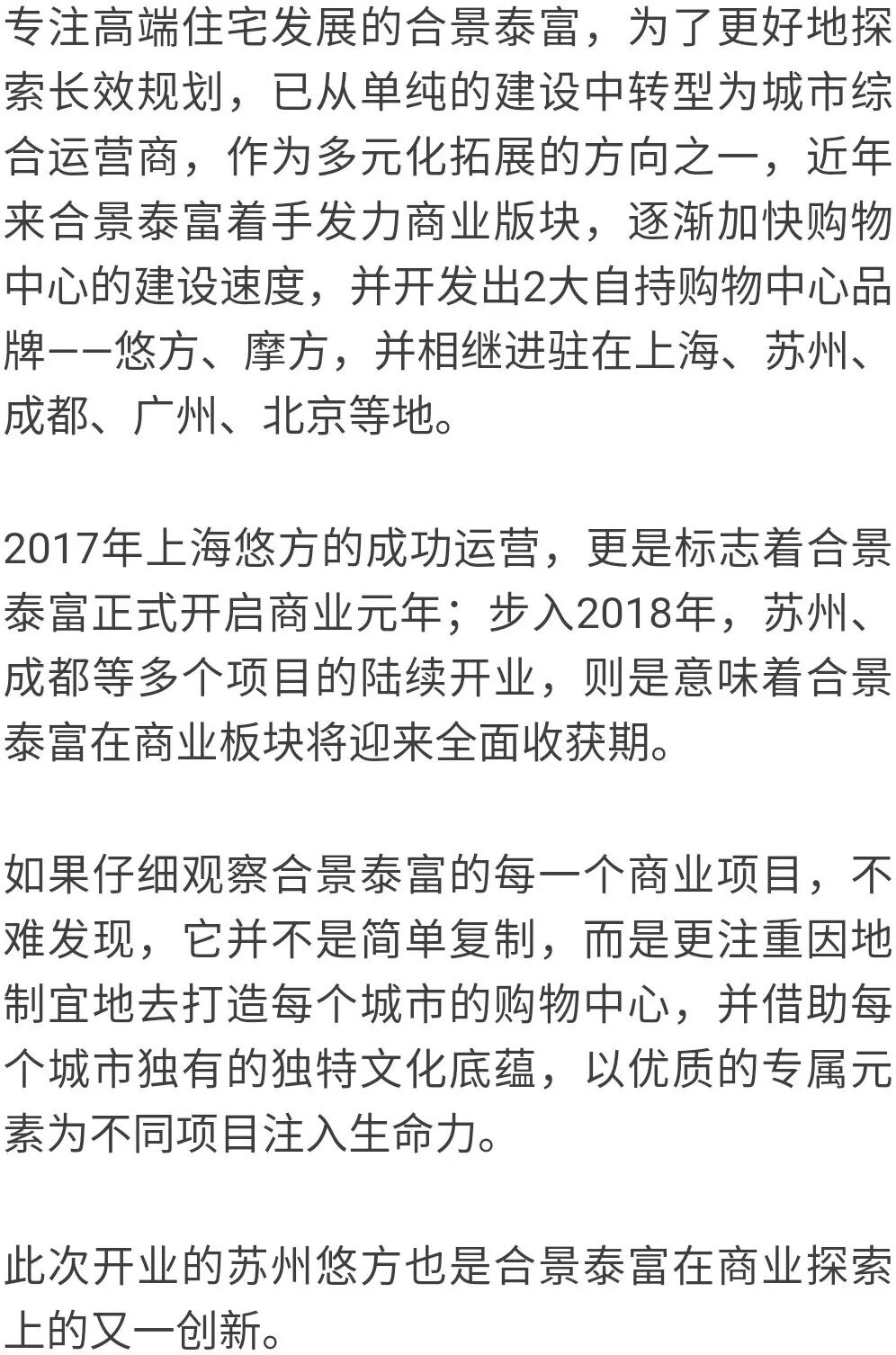 而4月28日苏州悠方的成功开业,也标志着合景泰富商业全国化之路又迈入了新的征程。